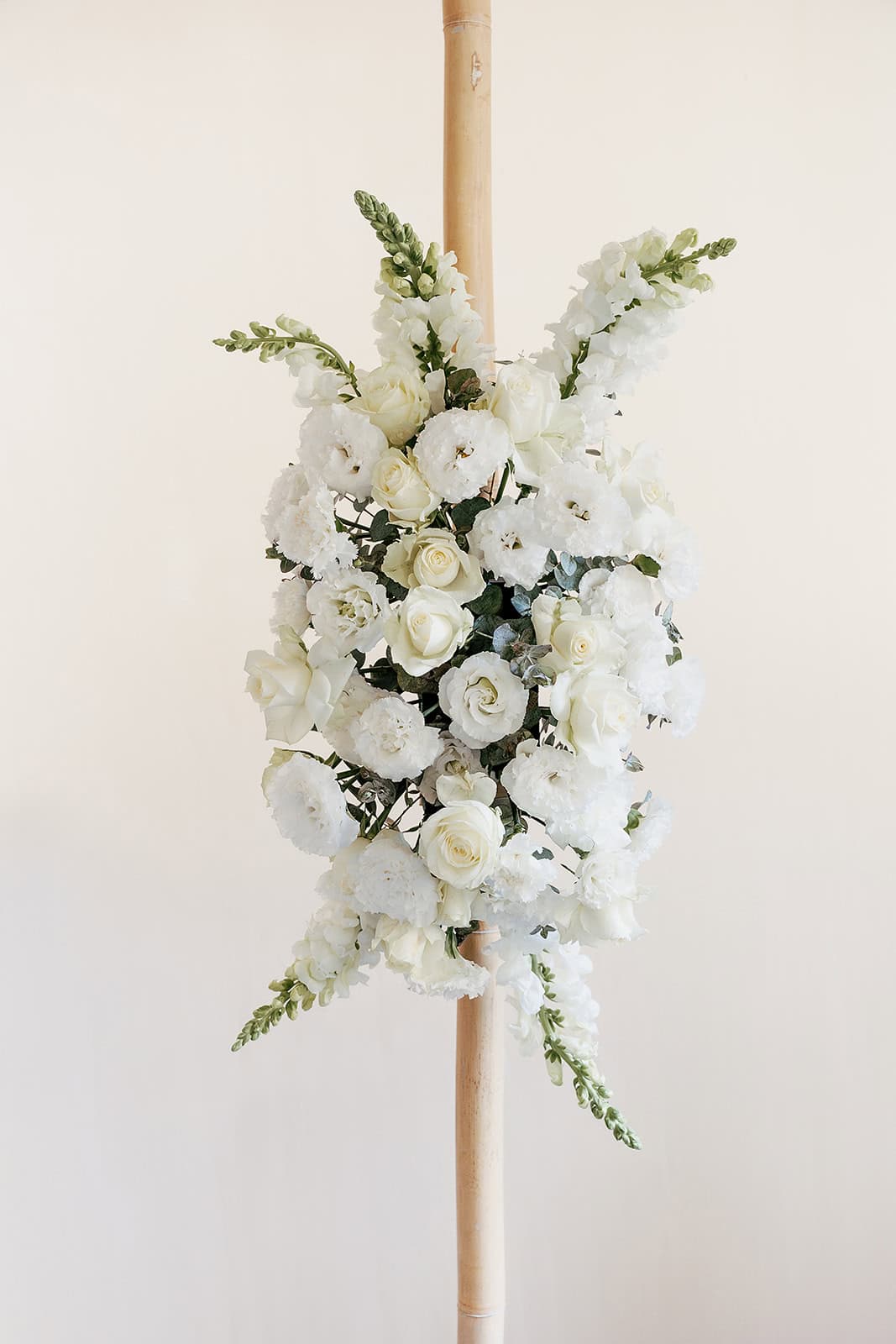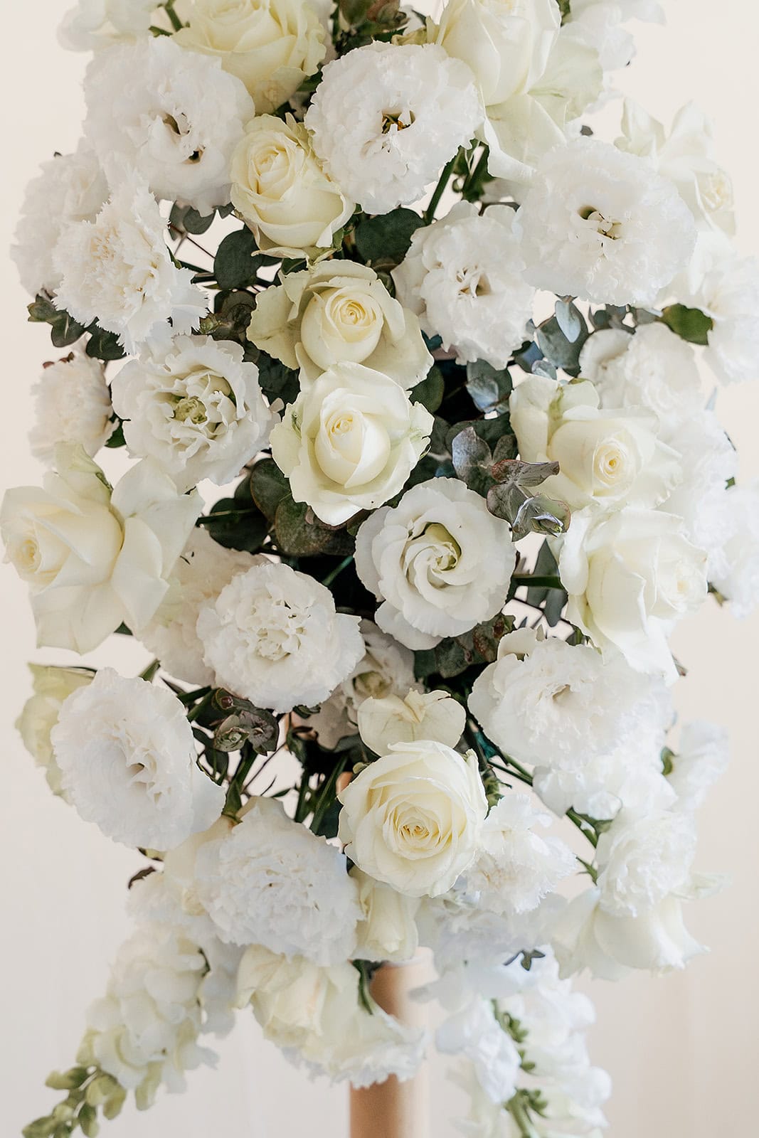 זוג חבקים לעיצוב החופה שזורים מפרחים טריים